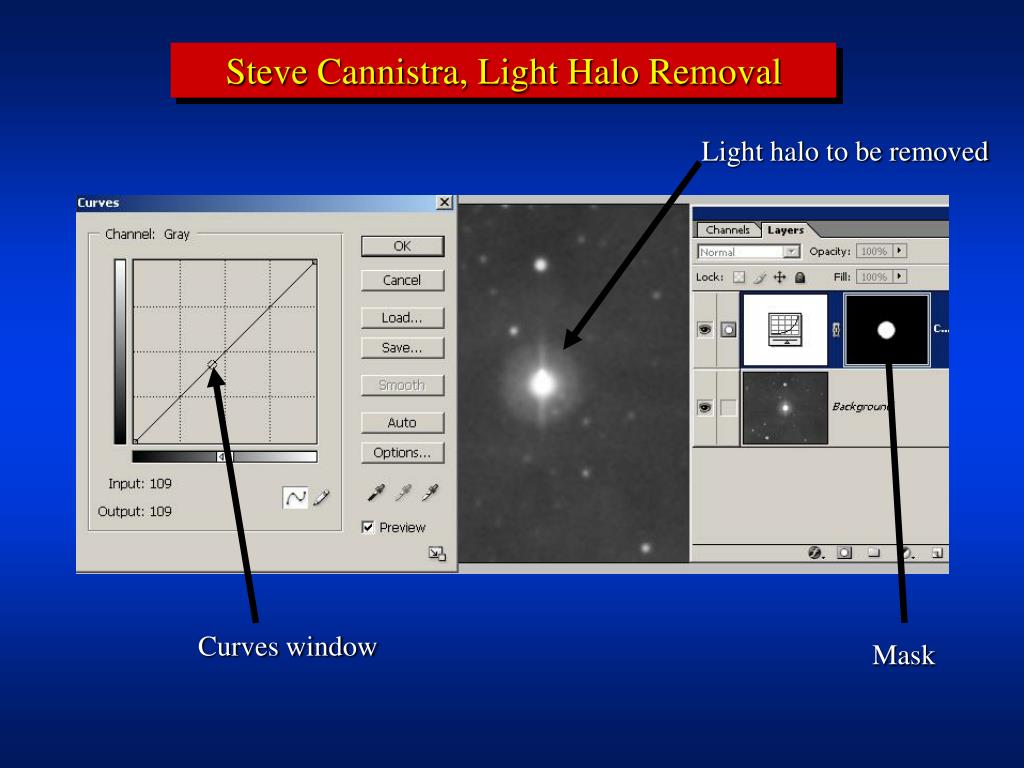 Steve Cannistra, Light Halo Removal Light halo to be removed Curves window Mask