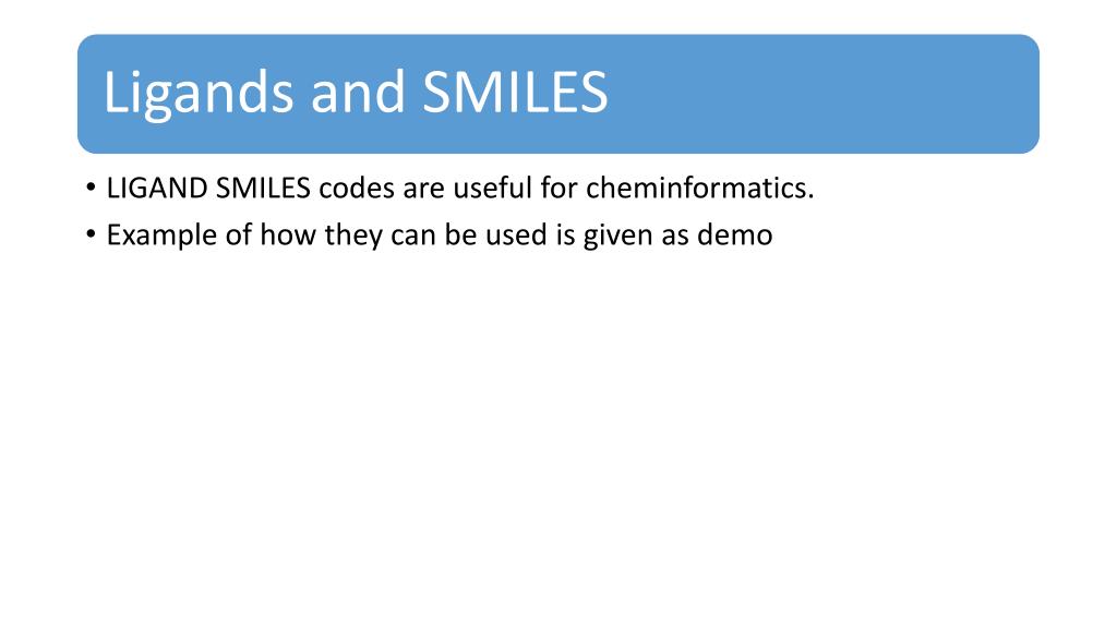 LIGAND SMILES codes are useful for cheminformatics. • Example of how they can be used is given as demo