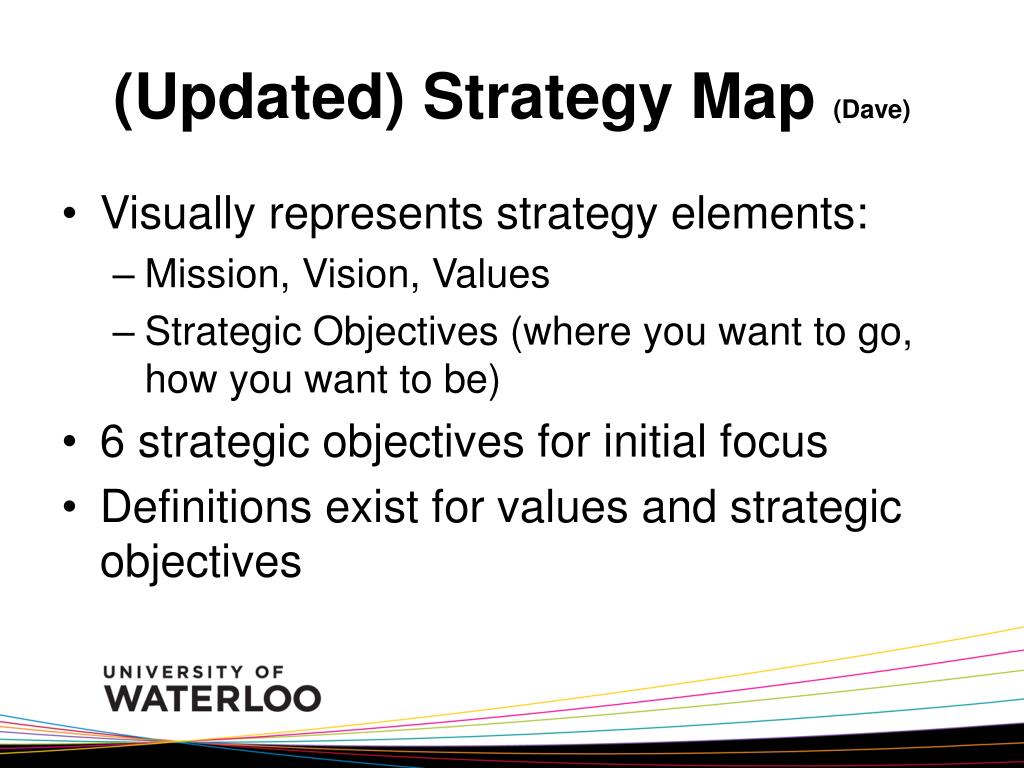 Today’s agenda • Summary of activities • The updated Strategy Map • Emerging IT directions • Some emerging priority initiatives • How IT “happens” at Waterloo • Next steps