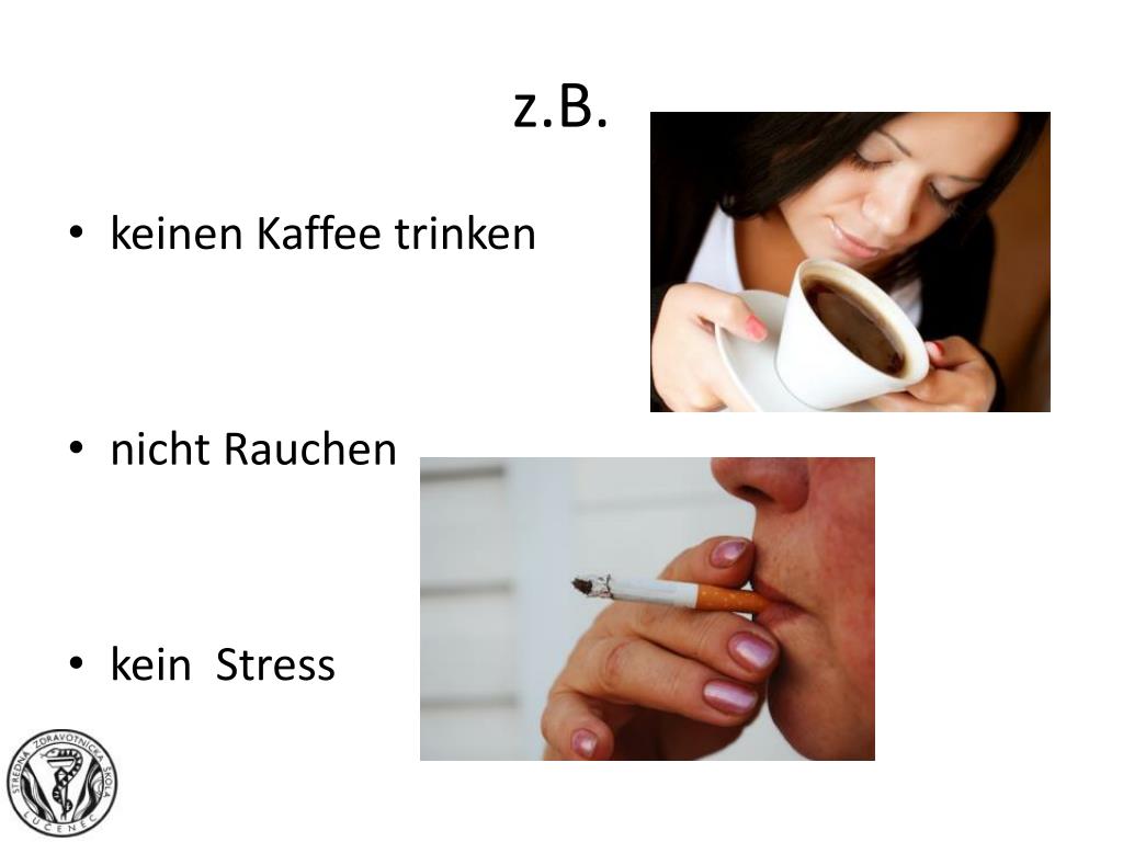 z.B. • keinen Kaffee trinken • nicht Rauchen • kein Stress