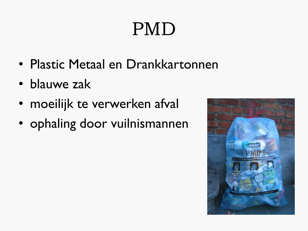 PMD • Plastic Metaal en Drankkartonnen • blauwe zak • moeilijk te verwerken afval • ophaling door vuilnismannen