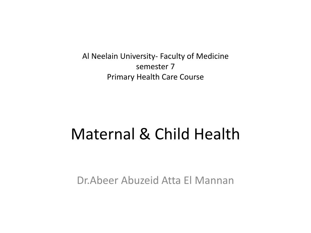 Al Neelain University- Faculty of Medicine semester 7Primary Health Care Course Maternal & Child Health Dr.AbeerAbuzeid Atta El Mannan