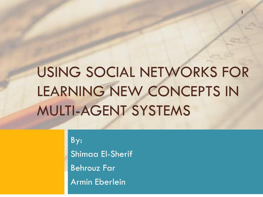 Using Social Networks for Learning New Concepts in Multi-Agent Systems By: Shimaa El-Sherif Behrouz Far Armin Eberlein