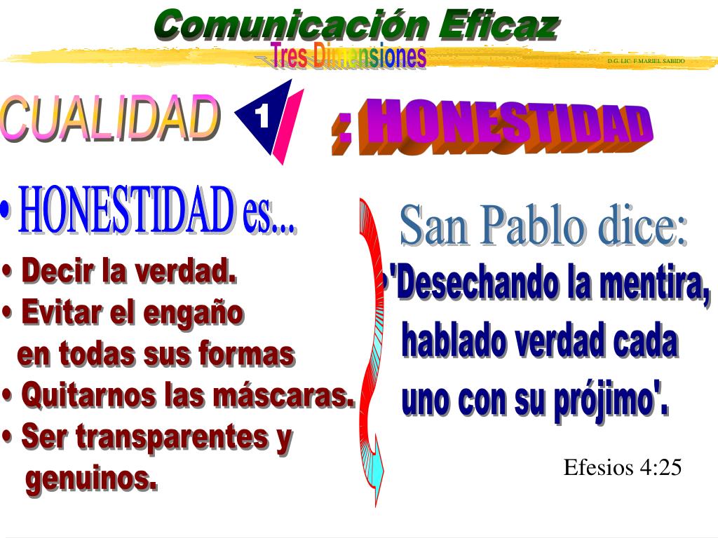 CUALIDAD : HONESTIDAD • HONESTIDAD es... San Pablo dice: • Decir la verdad. • Evitar el engaño en todas sus formas • Quitarnos las máscaras. • Ser transparentes y genuinos. •'Desechando la mentira, hablado verdad cada uno con su prójimo'. Efesios 4:25