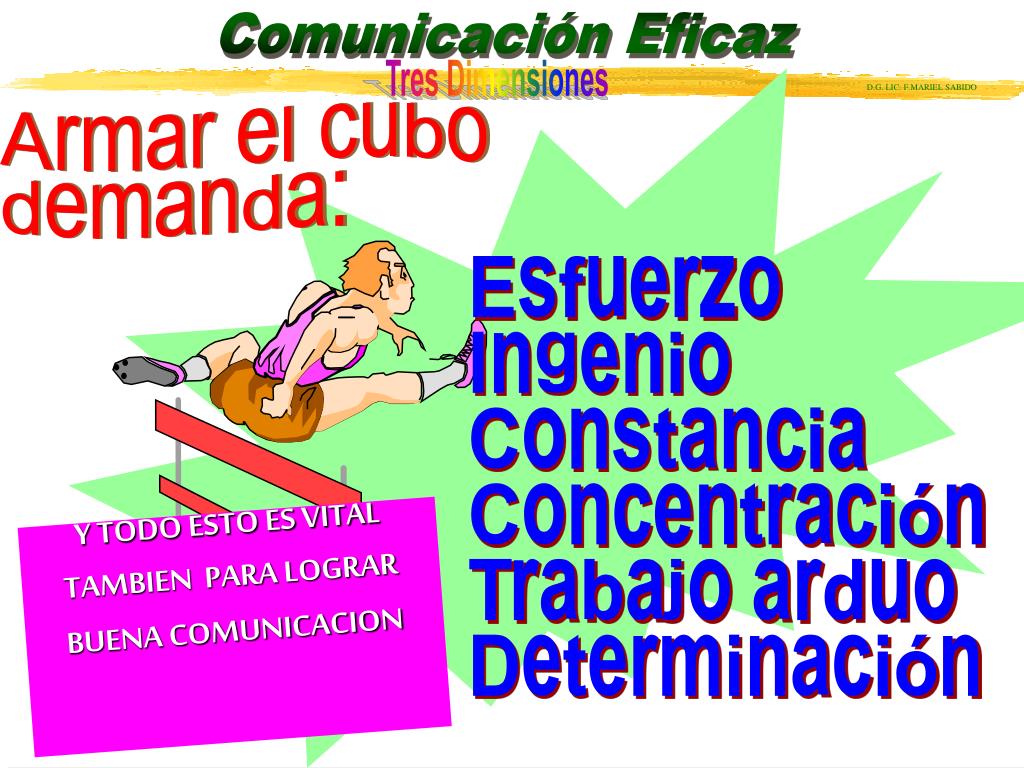 Armar el cubo demanda: Esfuerzo Ingenio Constancia Concentración Trabajo arduo Determinación Y TODO ESTO ES VITAL TAMBIEN PARA LOGRAR BUENA COMUNICACION