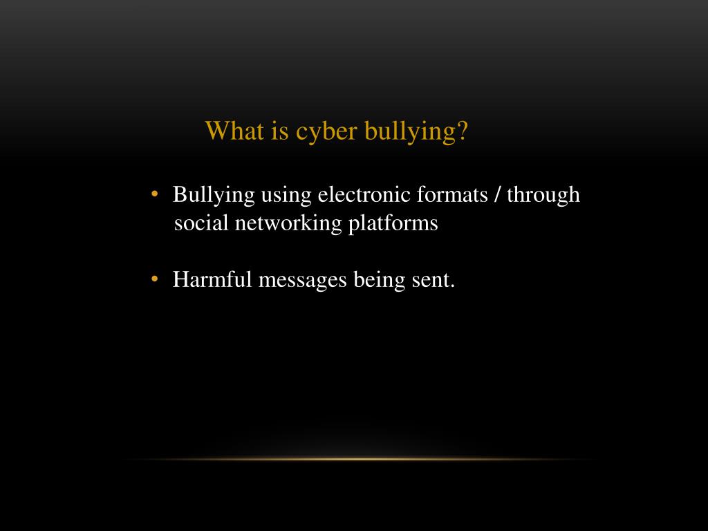 What is cyber bullying? • Bullying using electronic formats / through • social networking platforms • Harmful messages being sent.