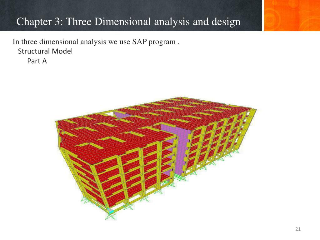 Chapter 3: Three Dimensional analysis and design In three dimensional analysis we use SAP program . Structural Model Part A