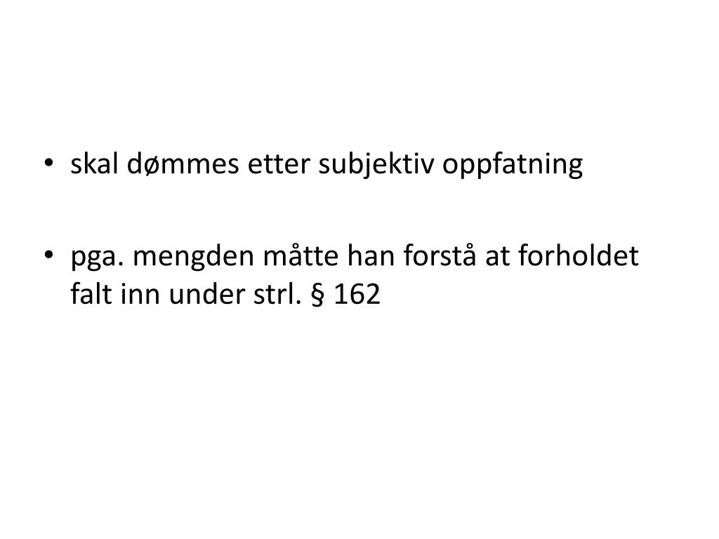 skal dømmes etter subjektiv oppfatning • pga. mengden måtte han forstå at forholdet falt inn under strl. § 162