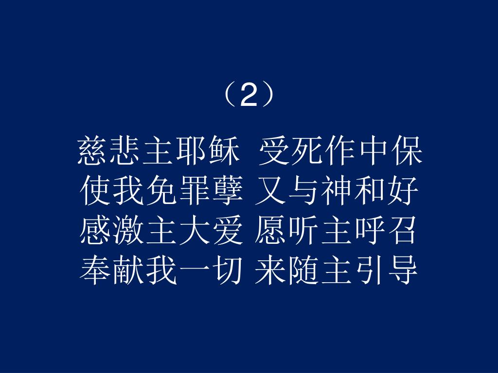 (2)慈悲主耶稣 受死作中保使我免罪孽 又与神和好感激主大爱 愿听主呼召奉献我一切 来随主引导