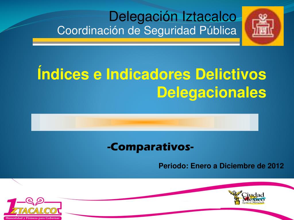Delegación Iztacalco Coordinación de Seguridad Pública Índices e Indicadores Delictivos Delegacionales -Comparativos- Periodo: Enero a Diciembre de 2012