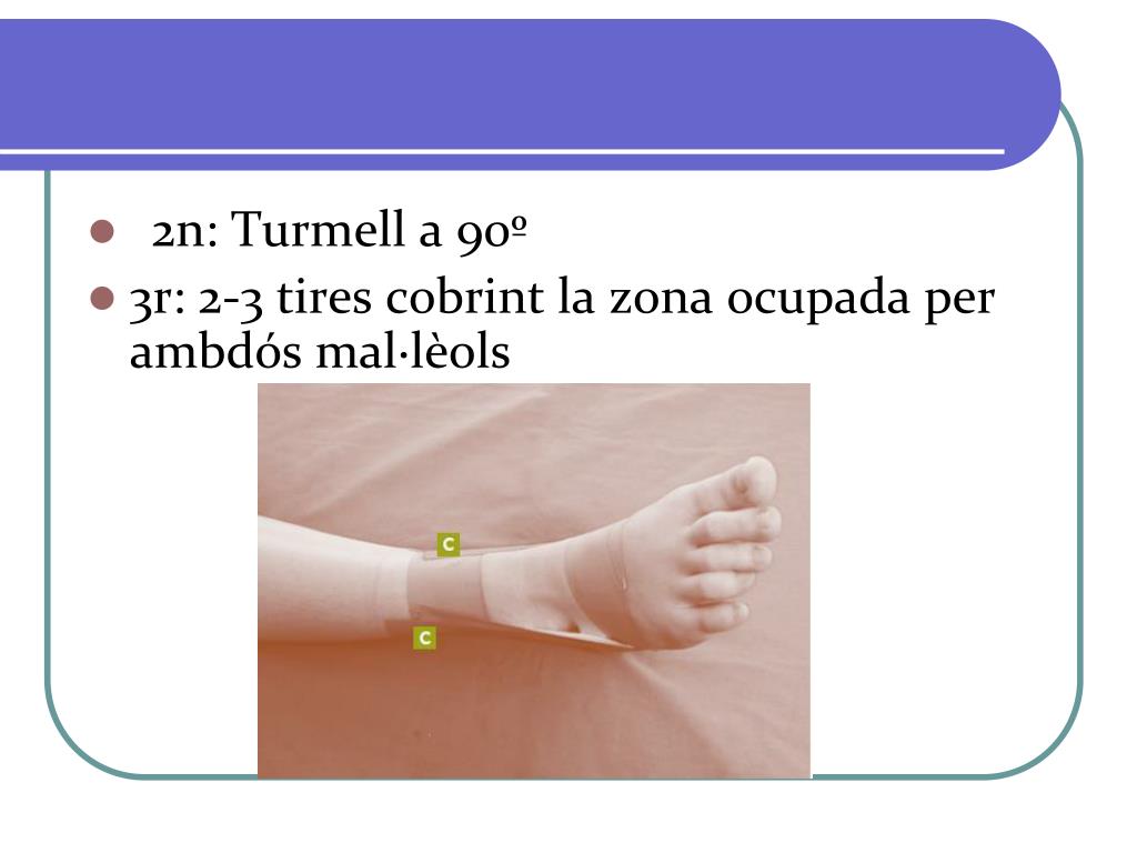 2n: Turmell a 90º • 3r: 2-3 tires cobrint la zona ocupada per ambdós mal·lèols