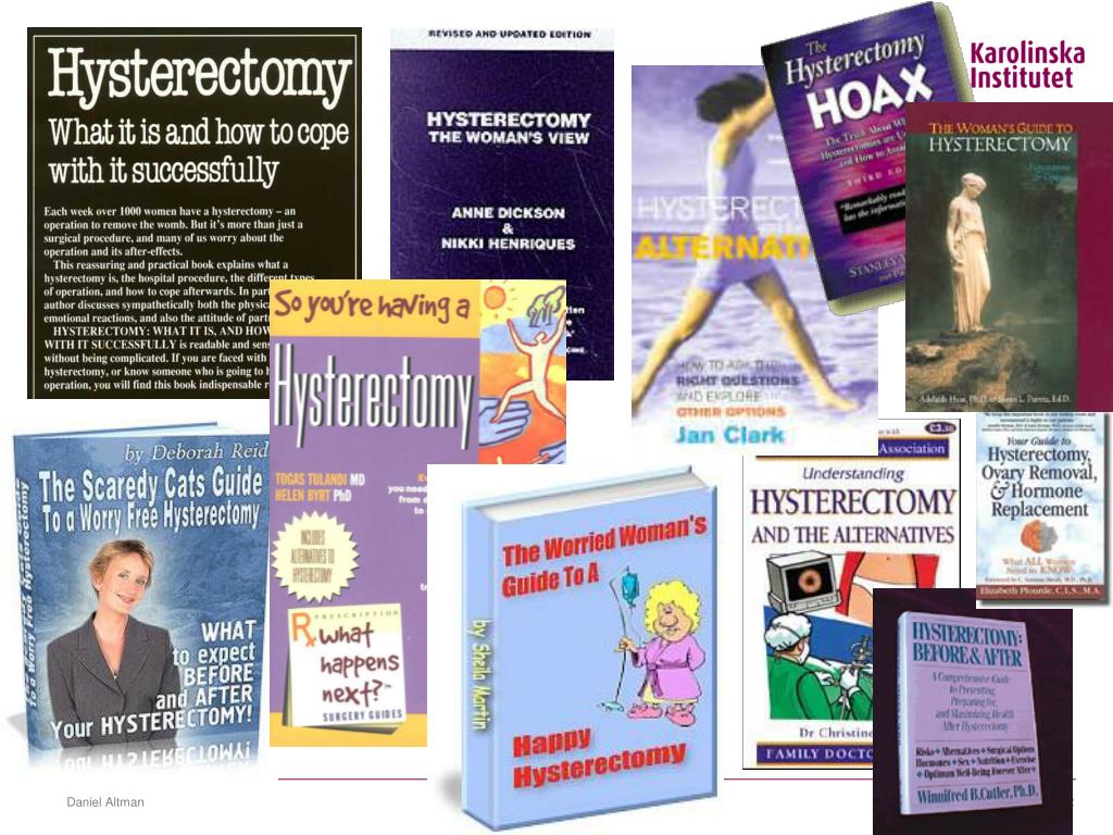 Kelly The effect of hysterectomy on ano-rectal physiology. Int J Colorect Dis 1998;13:116-8. Sood Anorectal dysfunction after surgical treatment for cervical cancer. J Am Coll Surg 2002;195:513-519. Prior Effect of hysterectomy on anorectal and urethrovesical physiology. Gut. 1992;33:264-7. Shorvon Defecography in normal volunteers: results and implications. Gut. 1989;30:1737-49. Richards A post-hysterectomy syndrome. Lancet 1974; 2: 983-5. Heaton Bowel function and irritable bowel symptoms after hysterectomy and cholecystectomy--a population based study. Gut 1993; 34: 1108-11. van Dam Changes in bowel function after hysterectomy. Dis Colon Rectum 1997; 40: 1342-7. Gurnari Chronic constipation after gynaecological surgery: a retrospective study. Ital J Gastroenterol 1988; 20: 183-6. Martinelli. Constipation after hysterectomy: fact or fiction? Eur J Surg 2000; 166: 356-60. Radley Bowel dysfunction following hysterectomy. Br J Obstet Gynaecol 1999; 106: 1120-5. Perry Relationship of gynecologic surgery to constipation. J Am Assoc Gynecol Laparosc 1999; 6: 75-8. Clarke Indications for and outcome of total abdominal hysterectomy for benign disease: a prospective cohort study. Br J Obstet Gynaecol 1995; 102: 611-20. Weber. Functional outcomes and satisfaction after abdominal hysterectomy. Am J Obstet Gynecol 1999; 181: 530-5. Goffeng. Does simple hysterectomy alter bowel function? Ann Chir Gynaecol 1997; 86: 298-303. Sood Anorectal dysfunction after surgical treatment for cervical cancer. J Am Coll Surg 2002; 195: 513-9. Farquhar A prospective study of the short-term outcomes of hysterectomy with and without oophorectomy. Aust N Z J Obstet Gynaecol 2002; 42: 197-204. Prior Effect of hysterectomy on anorectal and urethrovesical physiology. Gut 1992; 33: 264-7. Taylor. Effect of hysterectomy on bowel function. BMJ 1989; 299: 300-1. Parys. Bladder dysfunction after simple hysterectomy: urodynamic and neurological evaluation. Eur Urol 1990; 17: 129-33. Thakar. Outcomes after total versus subtotal abdominal hysterectomy. N Eng J Med 2002; 347: 1318-25. Virtanen. Effects of abdominal hysterectomy on urinary and sexual symptoms. Br J Urol 1993; 72: 868-72. Griffith-Jones. Adverse urinary symptoms after total abdominal hysterectomy--fact or fiction? Br J Urol 1991; 67: 295-7. Clarke. Indications for and outcome of total abdominal hysterectomy for benign disease: a prospective cohort study. Br J Obstet Gynaecol 1995; 102: 611-20. Smith. The neuroanatomical basis for denervation of the urinary bladder following major pelvic surgery. Br J Surg 1968; 55: 929-33. Peyrat. Prevalence and risk factors of urinary incontinence in young and middle-aged women. BJU International 2002; 89: 61-6. van der Vaart. The contribution of hysterectomy to the occurrence of urge and stress urinary incontinence symptoms. BJOG 2002; 109: 149-54. Morgan. Is intrinsic sphincter deficiency a complication of simple hysterectomy? J Urol 2000; 164: 767-9. Diokno. Medical correlates of urinary incontinence in the elderly. Urology 1990; 36: 129-38. Mommsen. Association between urinary incontinence in women and a previous history of surgery. Br J Urol 1993; 72: 30-7. Brown. Hysterectomy and urinary incontinence: a systematic review. Lancet 2000; 356: 535-9. Weber. Functional outcomes and satisfaction after abdominal hysterectomy. Am J Obstet Gynecol 1999; 181: 530-5. Prasad. The effect of hysterectomy on urinary symptoms and residual bladder volume. J Obstet Gynaecol 2002; 22: 544-7. Roovers. Does mode of hysterectomy influence micturition and defecation? Acta Obstet Gynecol Scand 2001; 80: 945-51. Cosson. Long term complications of vaginal hysterectomy: a case control study. Eur J Obstet Gynecol Reprod Biol 2001; 94: 239-44. Bhattacharya. A comparison of bladder and ovarian function two years following hysterectomy or endometrial ablation. Brit J Obstet Gynaecol 1996; 103: 898-903. Varför kontrovers? Daniel Altman