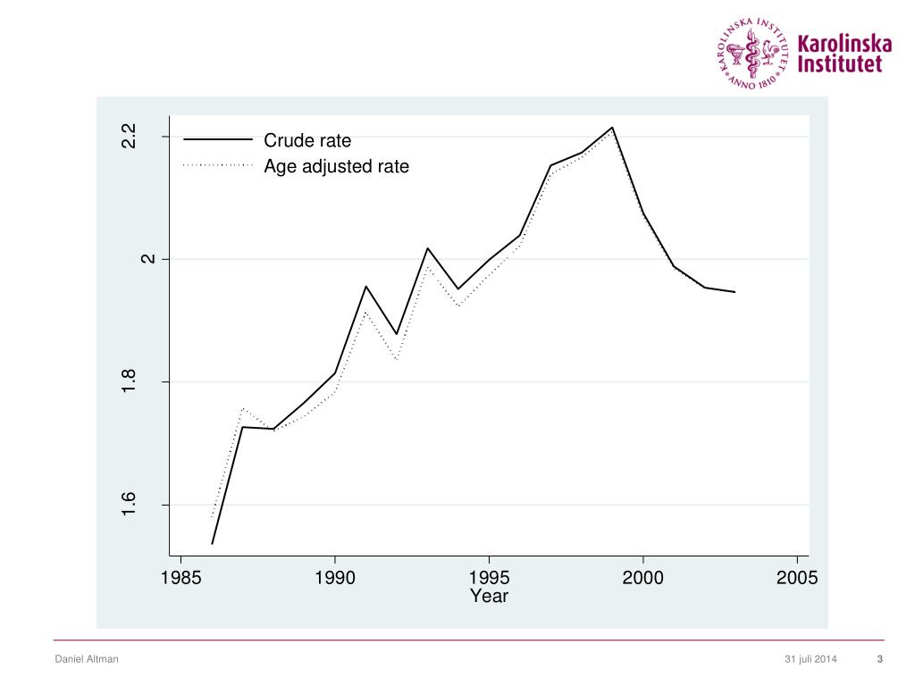 Metodologiska problem • Kliniska prospektiva studier: små studiepopulationer, varierande definitioner av sjukdom, och generellt otillräcklig uppföljningstid • Enkätbaserade populationsstudier: ofta tillräckligt stora men öppna för flera källor av selection och recall bias. Tvärsnitts-design. • RCT svåra att genomföra, små och kort uppföljningstid Daniel Altman