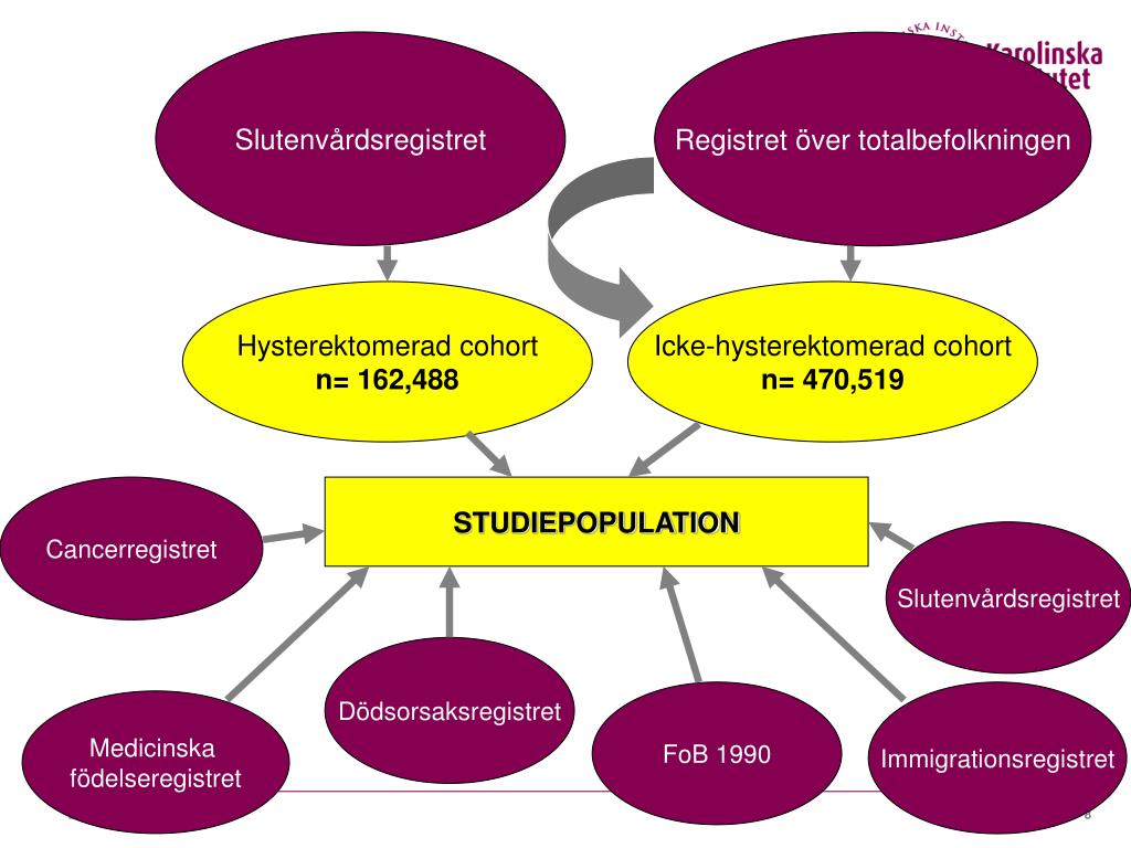Slutenvårdsregistret Registret över totalbefolkningen Hysterektomerad cohort n= 162,488 Icke-hysterektomerad cohort n= 470,519 Cancerregistret STUDIEPOPULATION Slutenvårdsregistret Dödsorsaksregistret FoB1990 Immigrationsregistret Medicinska födelseregistret Daniel Altman