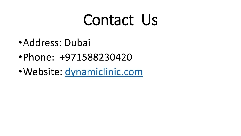 Contact Us • Address: Dubai • Phone: +971588230420 • Website: dynamiclinic.com