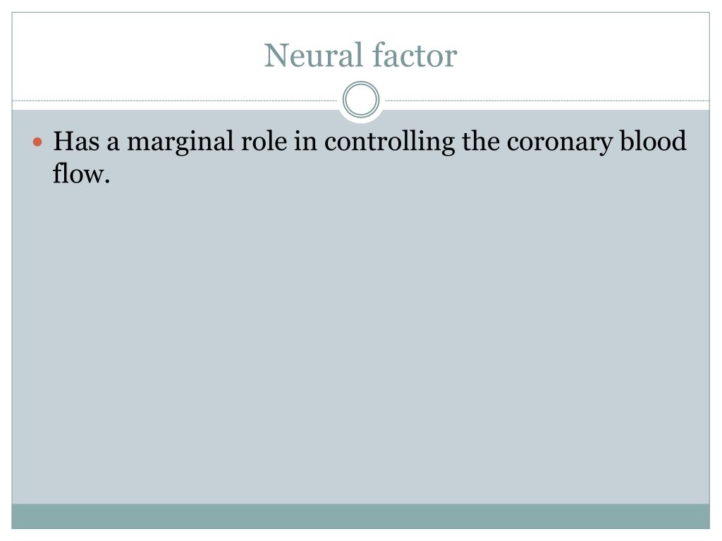 Neural factor Has a marginal role in controlling the coronary blood flow.
