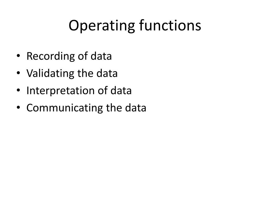 Operating functions • Recording of data • Validating the data • Interpretation of data • Communicating the data