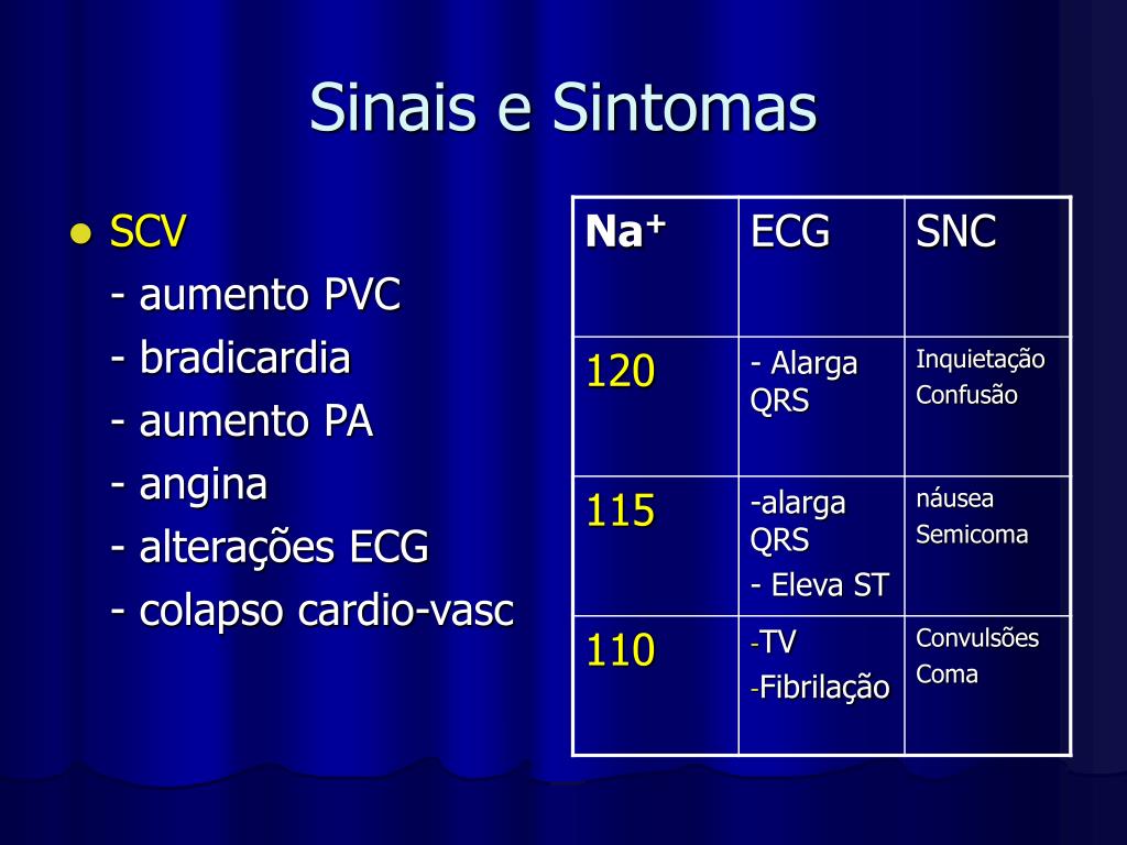 Hiperpotassemia • K+ > 5,5 mEq/l • Causas • Sinais e Sintomas • Tratamento