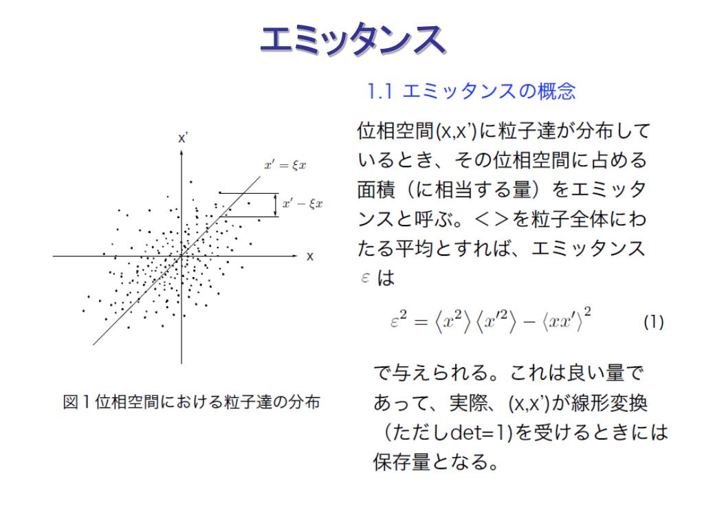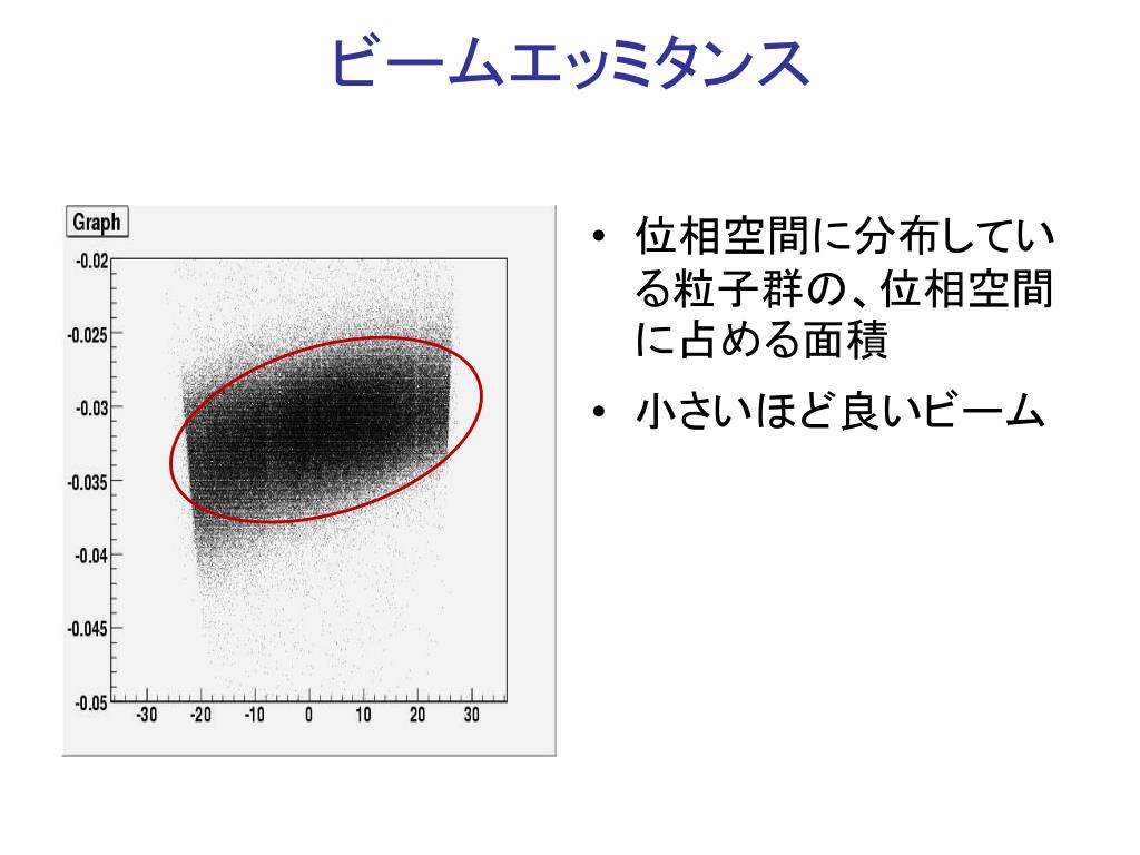 ビームエッミタンス • 位相空間に分布している粒子群の、位相空間に占める面積 • 小さいほど良いビーム