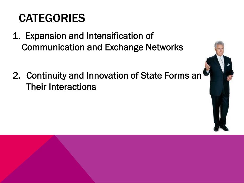 Categories • 1. Expansion and Intensification of Communication and Exchange Networks • Continuity and Innovation of State Forms and Their Interactions