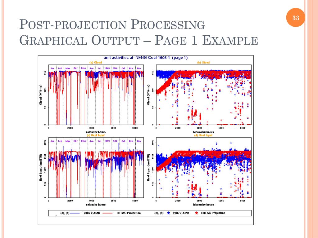 Output/Results • Future year hourly activity • Heat input (mmbtu) • Gross load (MW) • SO2 emissions (lbs) • NOx emissions (lbs) • File includes 8,760 hours for each: • Existing unit that is not retired • New state supplied unit • New generic unit created by the code • Summary files • Post-projection processing: graphs, more summaries, etc