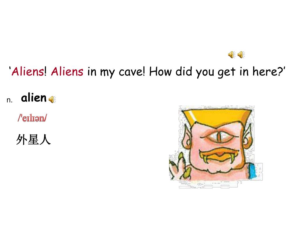 ‘Aliens! Aliens in my cave! How did you get in here?’ alien 外星人 n.
