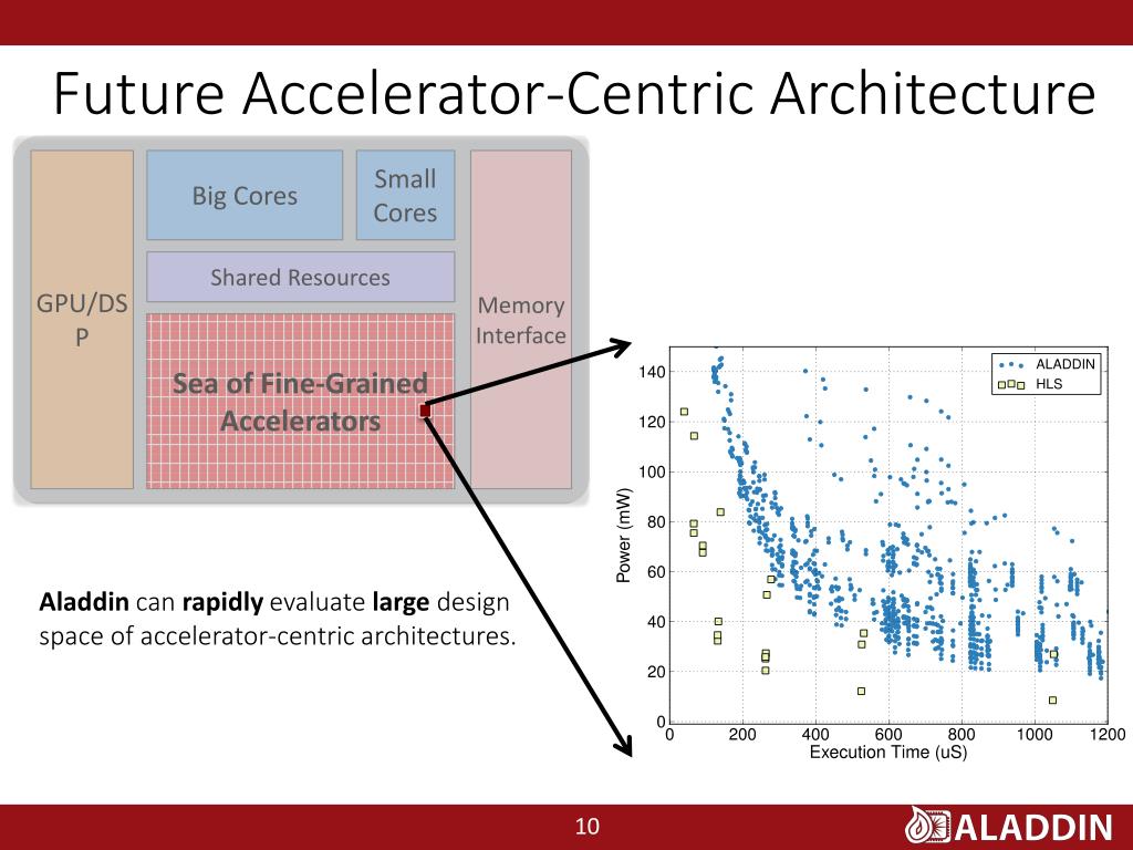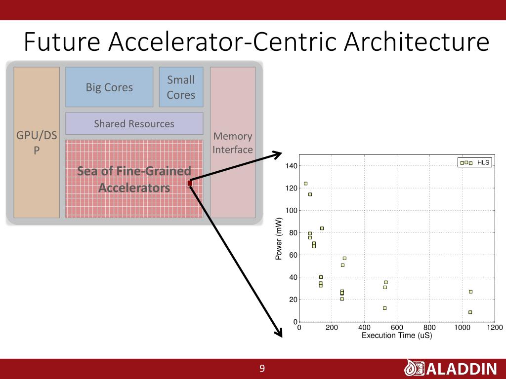 Future Accelerator-Centric Architecture GPU/DSP Big Cores Small Cores Memory Interface Shared Resources Sea of Fine-Grained Accelerators Aladdin can rapidly evaluate large design space of accelerator-centric architectures.