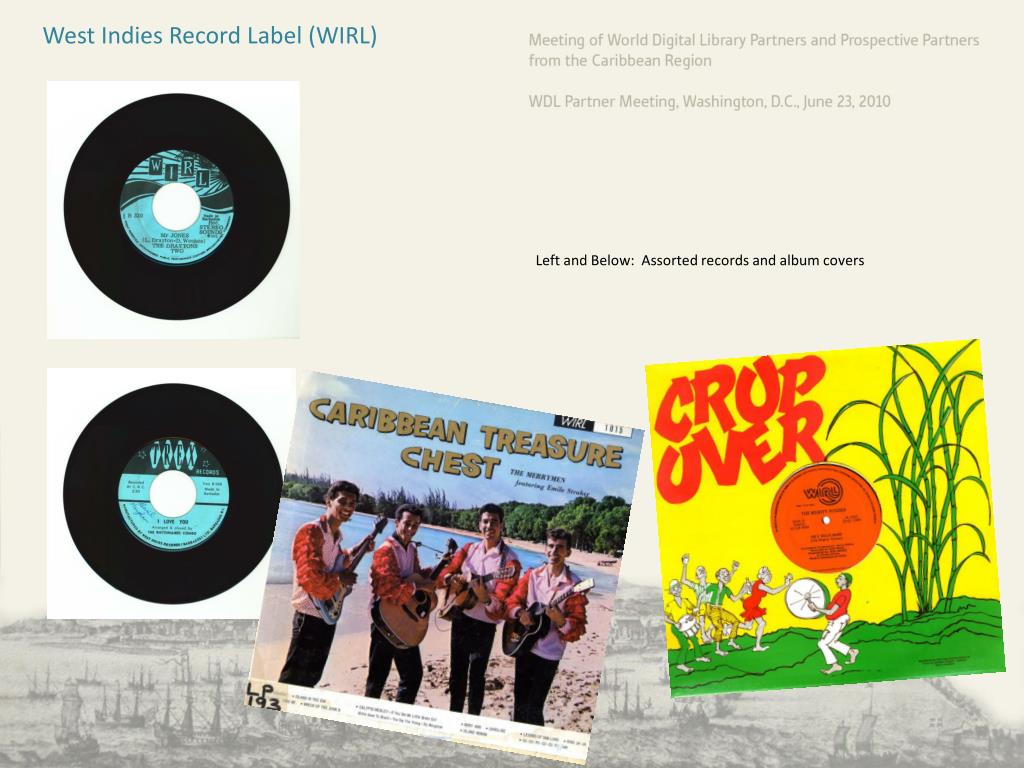 West Indies Record Label (WIRL) Left and Below: Assorted records and album covers
