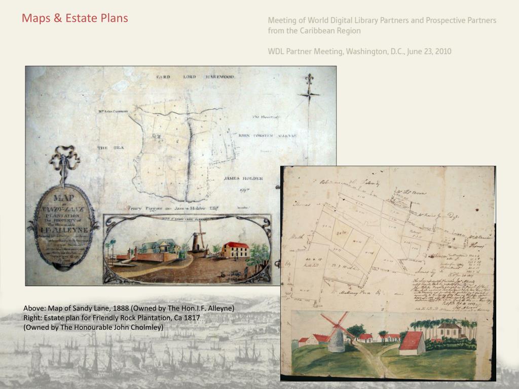 Maps & Estate Plans Above: Map of Sandy Lane, 1888 (Owned by The Hon.I.F. Alleyne) Right: Estate plan for Friendly Rock Plantation, Ca 1817 (Owned by The Honourable John Cholmley)