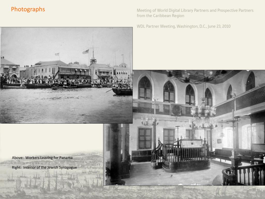 Photographs Above: Workers Leaving for Panama Right: Interior of the Jewish Synagogue