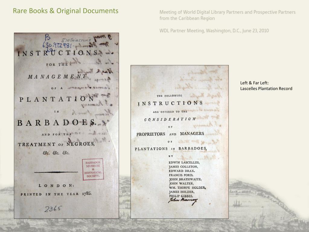 Rare Books & Original Documents Left & Far Left: Lascelles Plantation Record