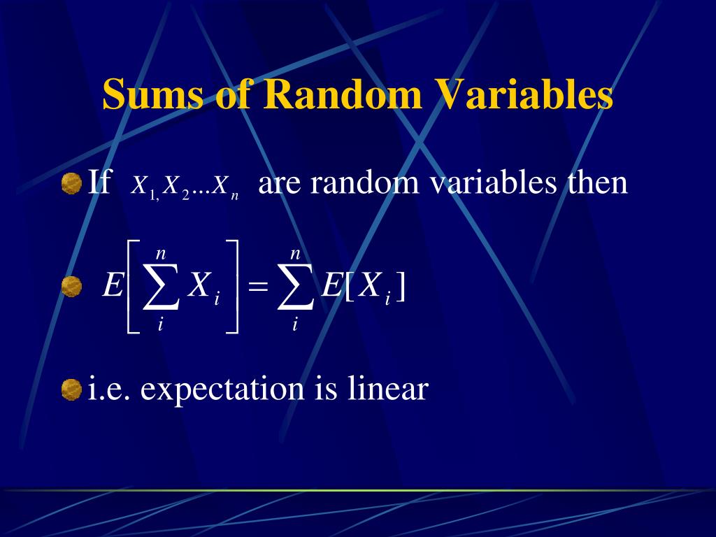 Sums of Random Variables • If are random variables then • i.e. expectation is linear