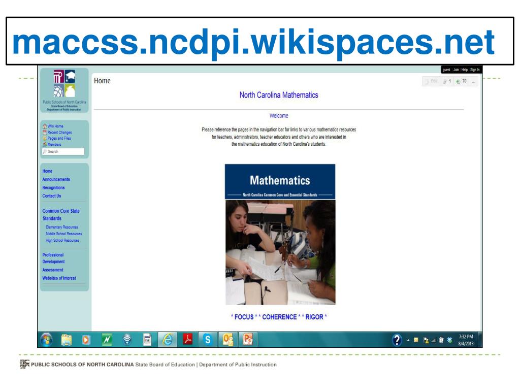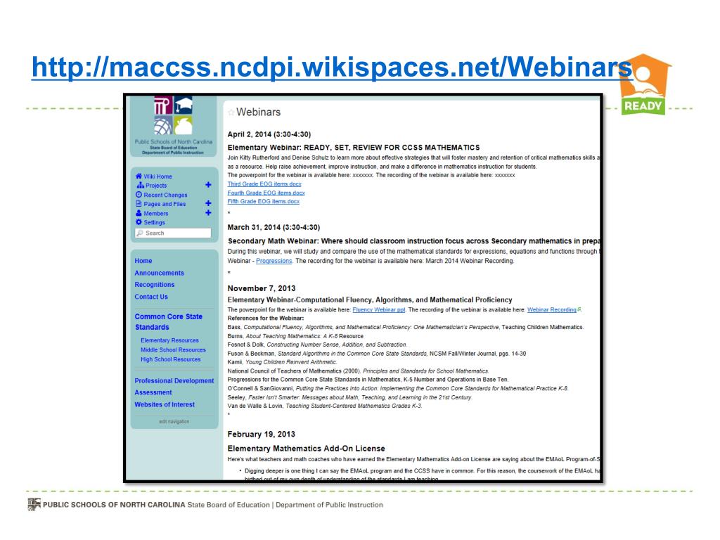 Welcome This webinar will begin at 3:30 • While you are waiting, please: mute your sound. • During the webinar, please: type all questions in the question/chat box in the go-to task pane on the right of your screen. This webinar will be available on the NCDPI Mathematics Wiki: http://maccss.ncdpi.wikispaces.net/Webinars