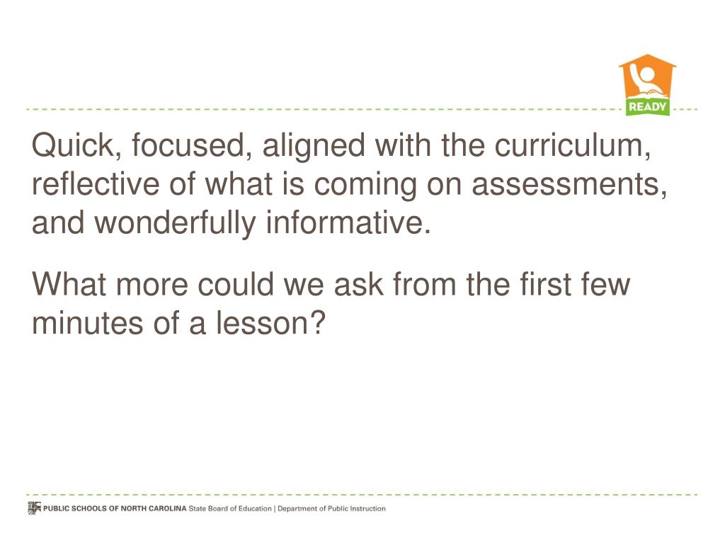 Quick, focused, aligned with the curriculum, reflective of what is coming on assessments, and wonderfully informative. What more could we ask from the first few minutes of a lesson?