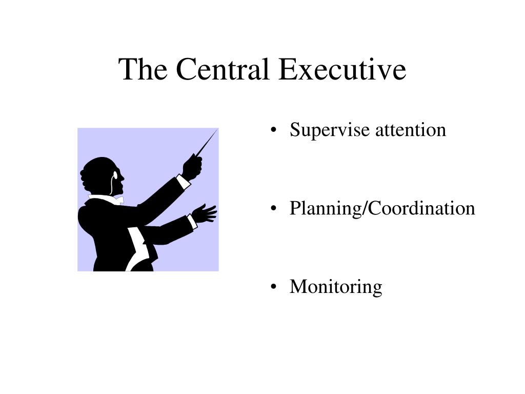 The Central Executive • Supervise attention • Planning/Coordination • Monitoring