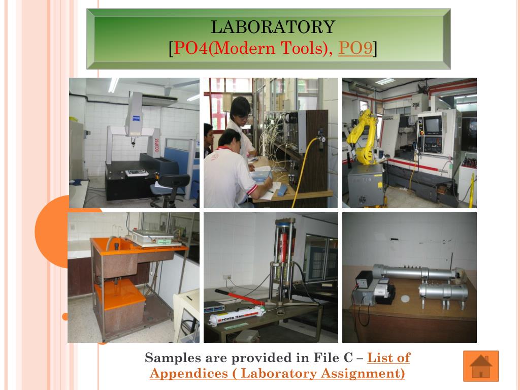 Sample of student thesis are provided. Example : Analisis retak lesu dengan menggunakan kaedah stokastik unsur terhingga. Example : Cara penjimatan tenaga keseluruhan dalam sistem penyaman udara. Final Year Project PO 1,PO 2, PO3, PO4, PO5, PO 11 PO8 , (Life Long Learning),