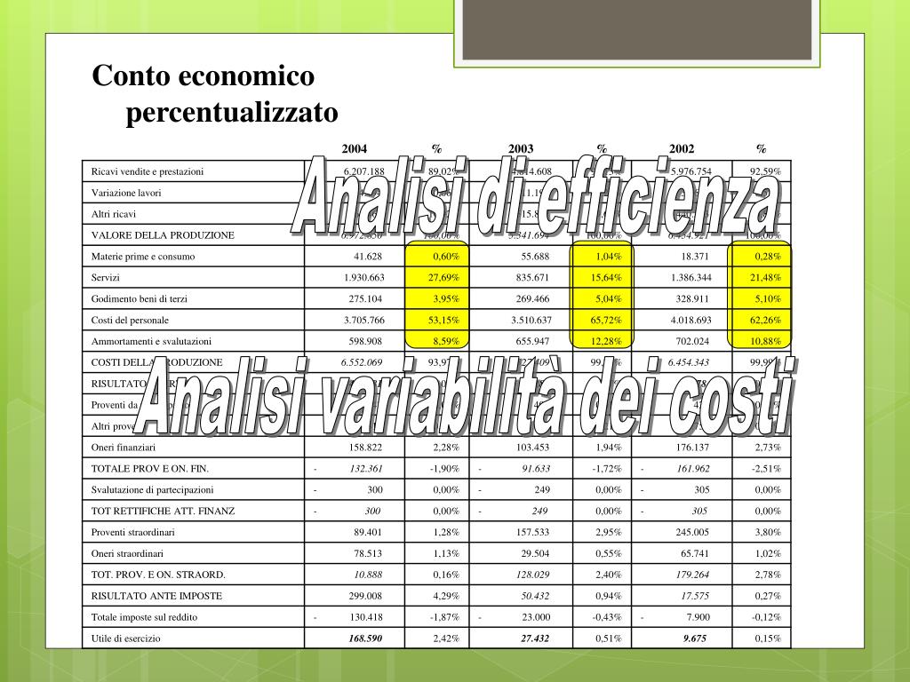 Analisi di efficienza Analisi variabilità dei costi