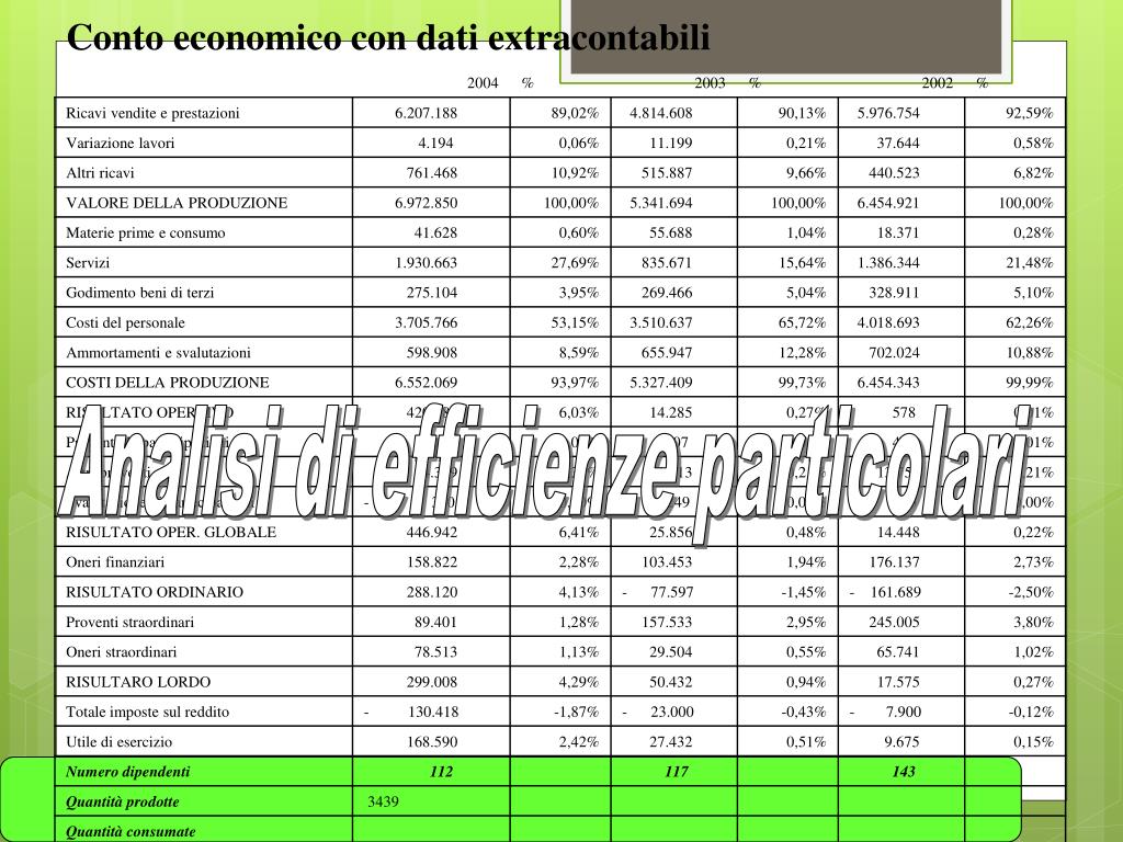 I risultati particolari della gestione caratteristicaBasati sulla classificazione Costi Interni-Costi Esterni ...a cosa serve? • E’ adatto per confronti con aziende concorrenti o con standard di mercato Costi strutturali e di lavoro dipendente (Struttura tecnica e organizzativa) Costi Interni Relativi a fattori produttivi correnti (diversi dal lavoro dipendente) Costi Esterni