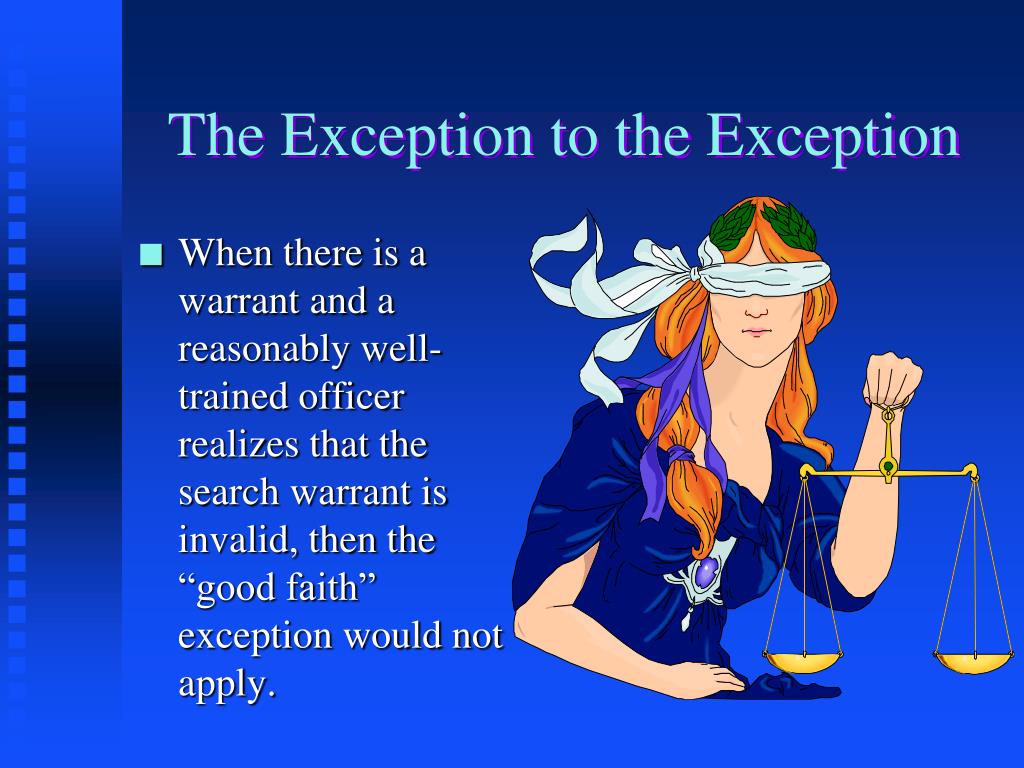 The Exception to the Exception • When there is a warrant and a reasonably well-trained officer realizes that the search warrant is invalid, then the “good faith” exception would not apply.