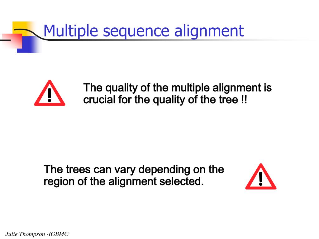 Multiple sequence alignment • The quality of the multiple alignment is crucial for the quality of the tree !! • The trees can vary depending on the region of the alignment selected.