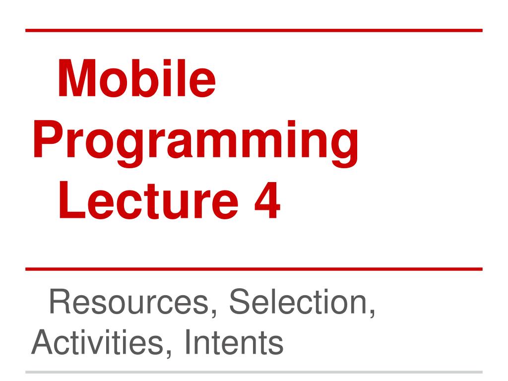 Mobile Programming Lecture 4 Resources, Selection, Activities, Intents