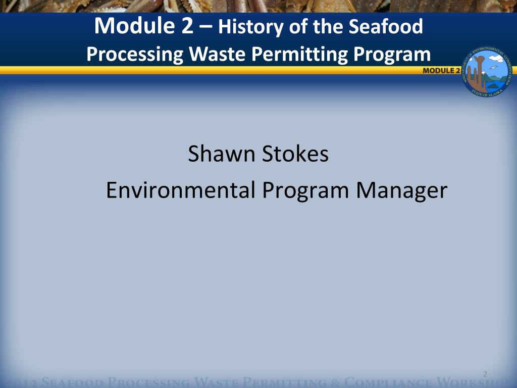 Module 2 – History of the Seafood Processing Waste Permitting Program Shawn Stokes Environmental Program Manager