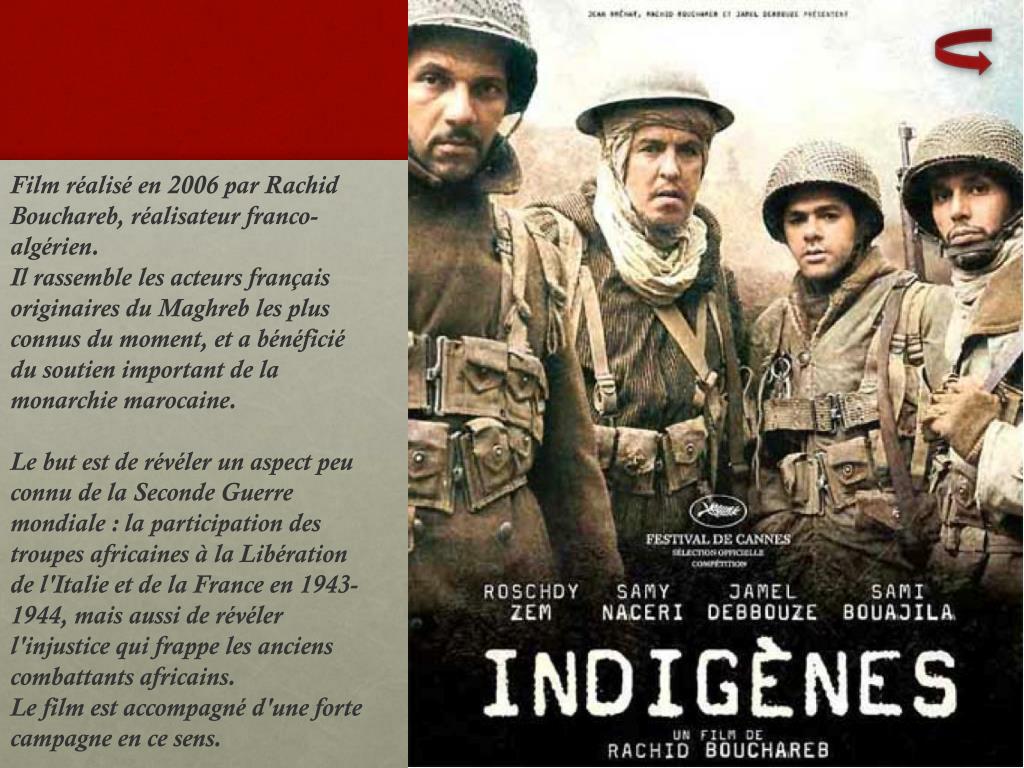 Film réalisé en 2006 par Rachid Bouchareb, réalisateur franco-algérien. Il rassemble les acteurs français originaires du Maghreb les plus connus du moment, et a bénéficié du soutien important de la monarchie marocaine. Le but est de révéler un aspect peu connu de la Seconde Guerre mondiale : la participation des troupes africaines à la Libération de l'Italie et de la France en 1943-1944, mais aussi de révéler l'injustice qui frappe les anciens combattants africains. Le film est accompagné d'une forte campagne en ce sens.
