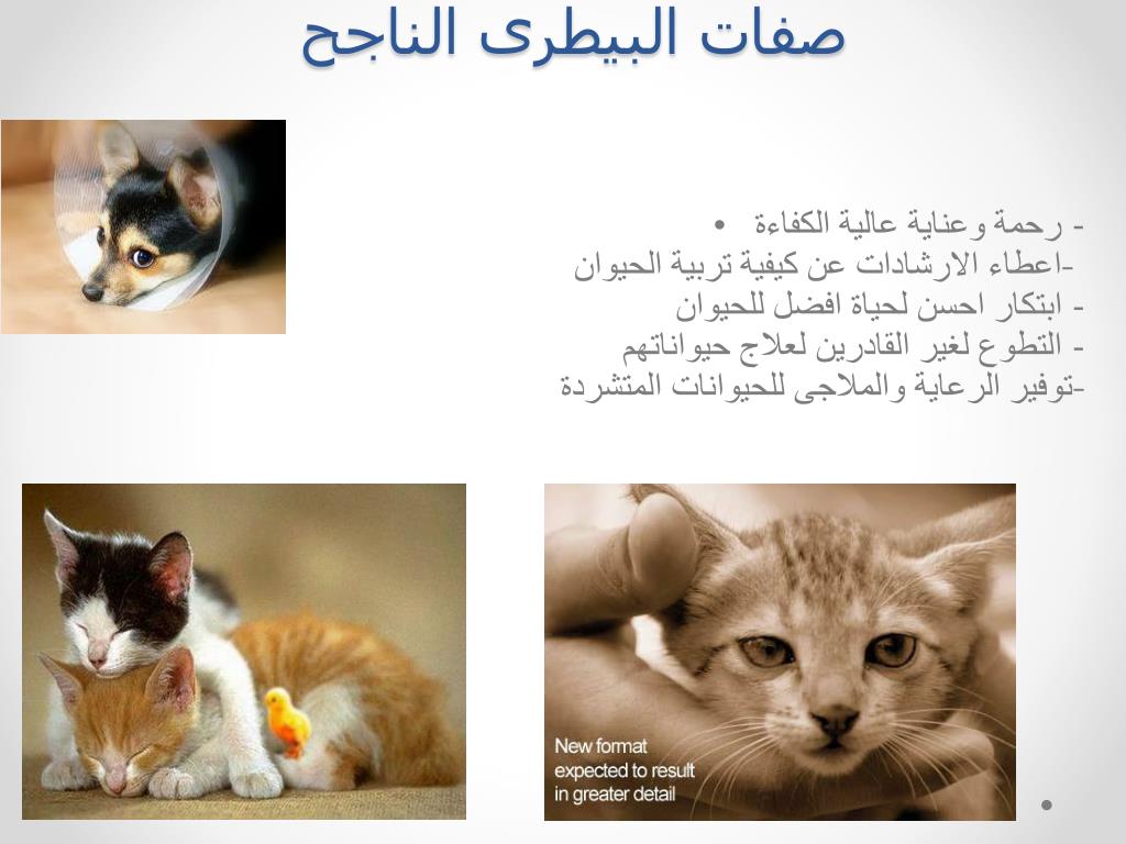 صفات البيطرى الناجح • رحمة وعناية عالية الكفاءة -اعطاء الارشادات عن كيفية تربية الحيوان-ابتكار احسن لحياة افضل للحيوان -التطوع لغير القادرين لعلاج حيواناتهم -توفير الرعاية والملاجى للحيوانات المتشردة-