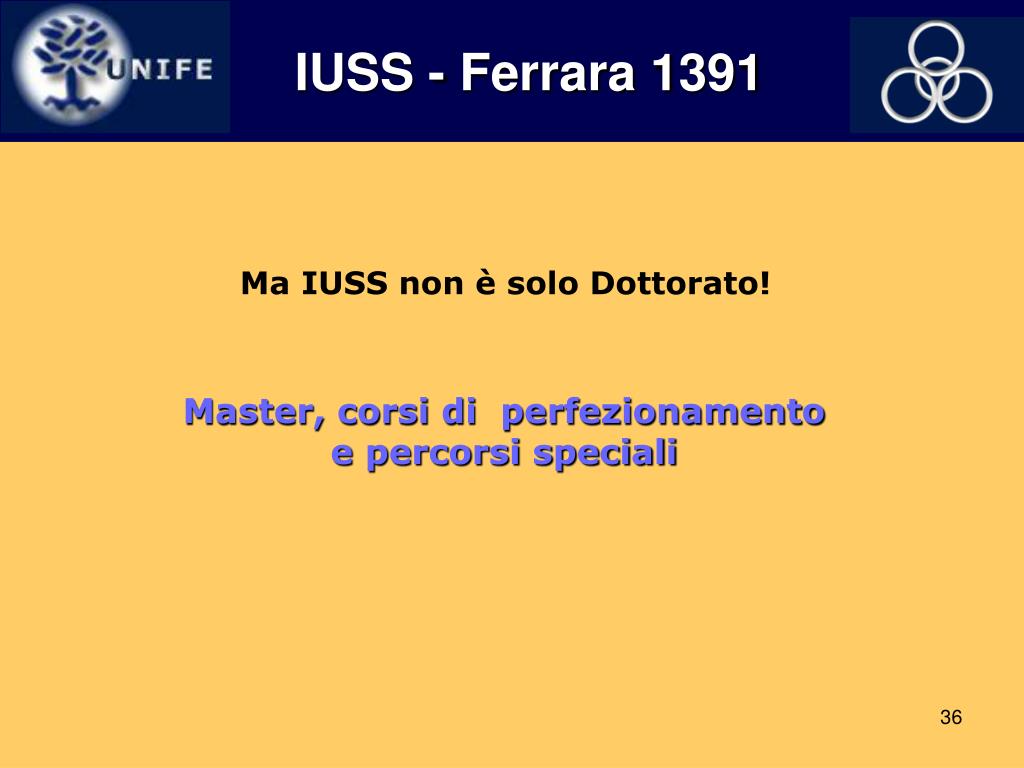 IUSS - Ferrara 1391 Ma IUSS non è solo Dottorato! Master, corsi di perfezionamento e percorsi speciali
