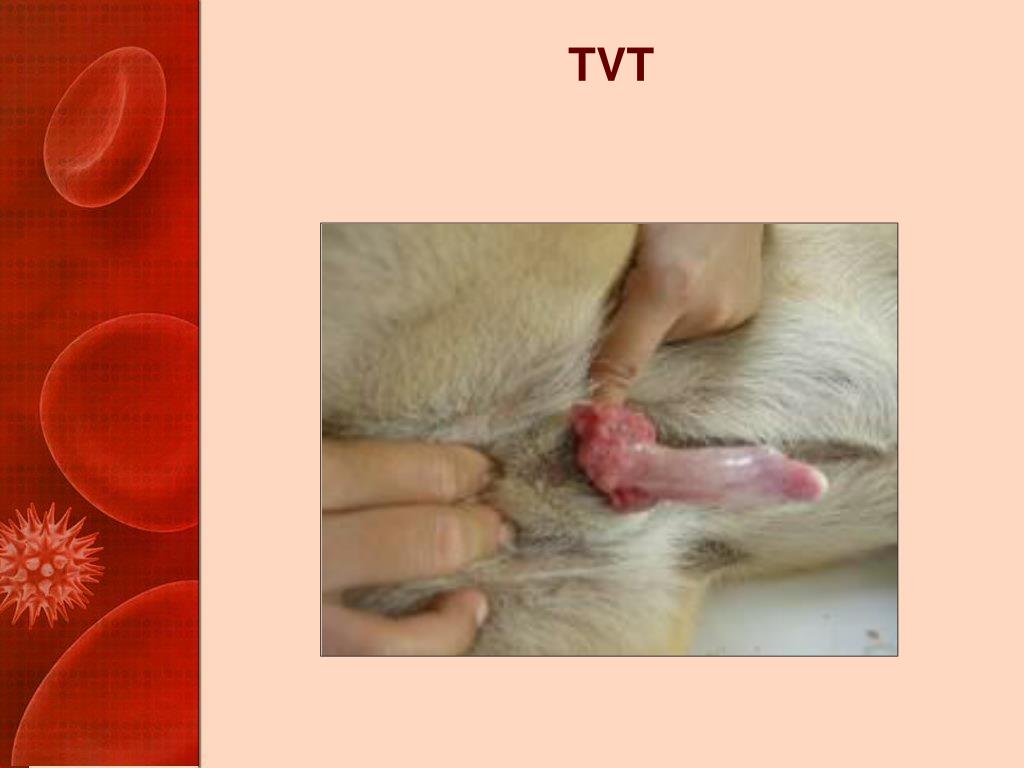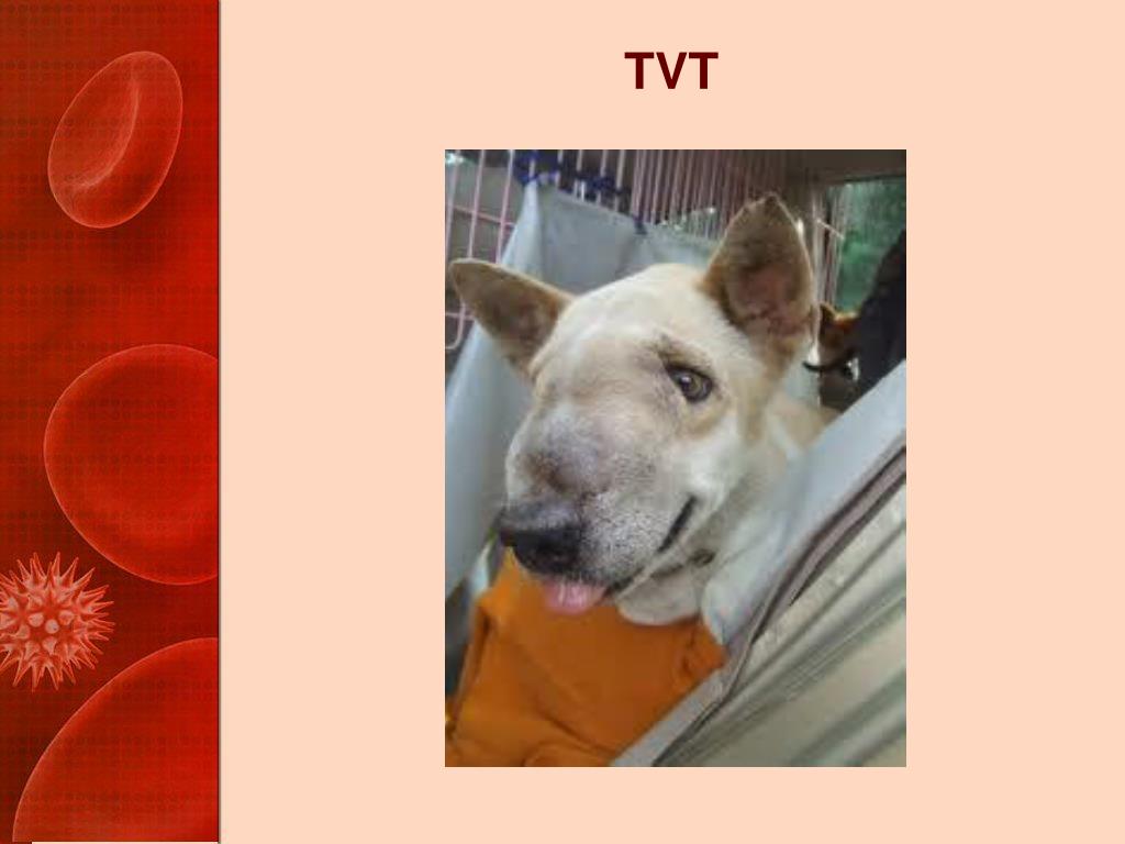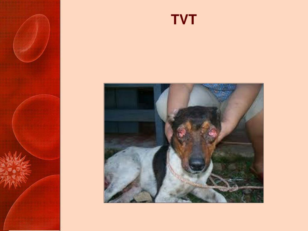 TVT • The only known naturally occurring tumor that can be transplanted as an allograft • Transmitted by transplantation of cells onto abraded mucous membranes • During breeding • Nose to butt contact • In the nose, on the perineum, or on/in the reproductive tract • Begins as hyperemic papules • Progresses to multilobulated, ulcerated, bleeding mass