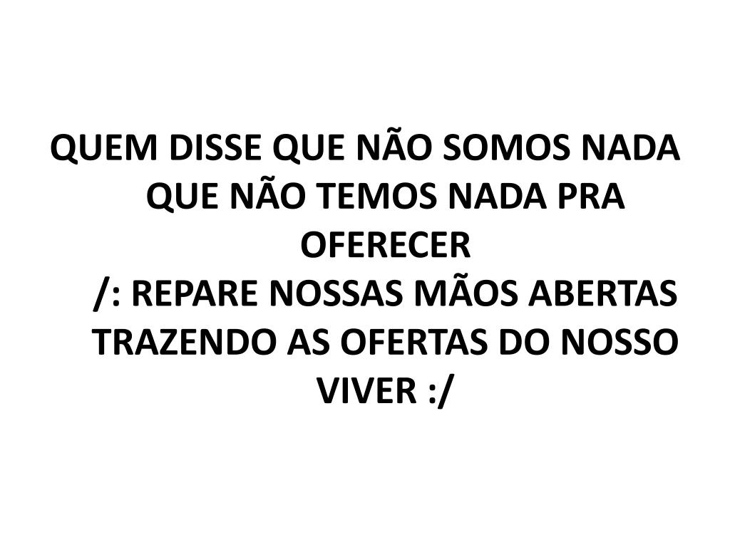 QUEM DISSE QUE NÃO SOMOS NADA QUE NÃO TEMOS NADA PRA OFERECER /: REPARE NOSSAS MÃOS ABERTAS TRAZENDO AS OFERTAS DO NOSSO VIVER :/