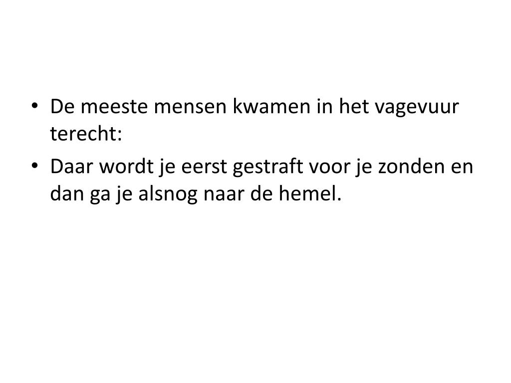 De meeste mensen kwamen in het vagevuur terecht: • Daar wordt je eerst gestraft voor je zonden en dan ga je alsnog naar de hemel.