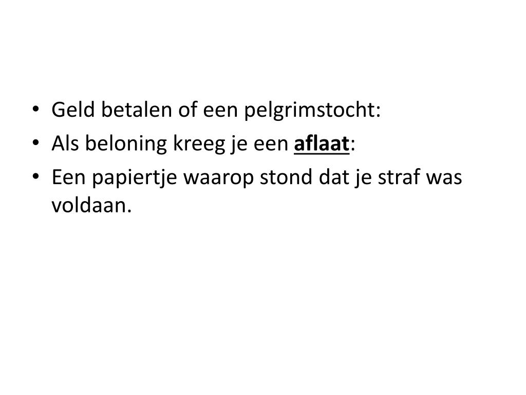 Geld betalen of een pelgrimstocht: • Als beloning kreeg je een aflaat: • Een papiertje waarop stond dat je straf was voldaan.