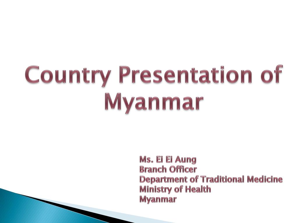 Country Presentation of Myanmar Ms. EiEiAung Branch Officer Department of Traditional Medicine Ministry of Health Myanmar